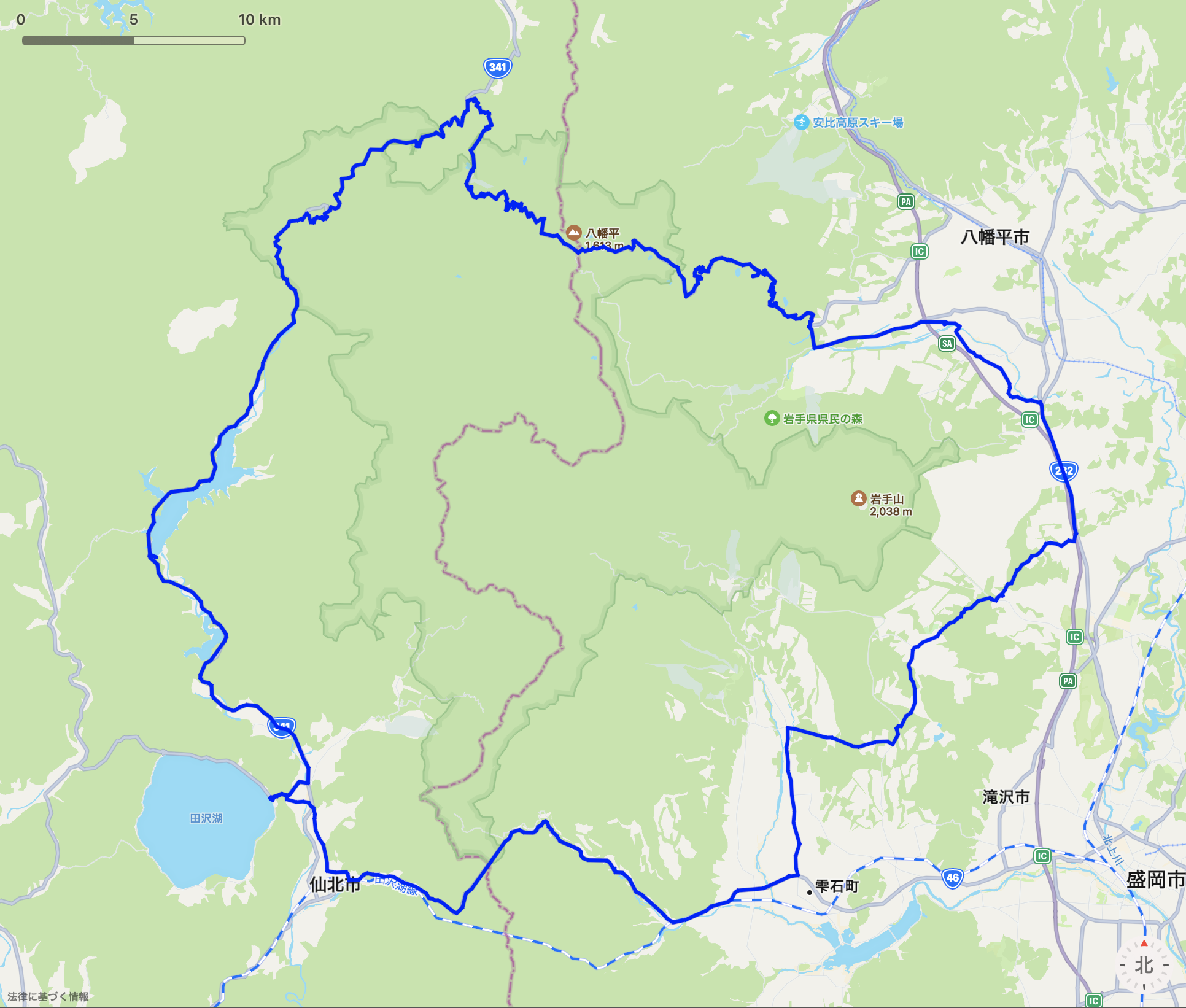 → 当時使用した「東北ツーリングマップ」にはその時のルートがマーカーでなぞってあるが、アスピーテラインの下りについてgooglemapと見比べてみたが相違点は無かった。